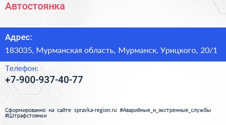 Автостоянка по адресу 183035, Мурманская область, Мурманск, Урицкого, 20/1 в дальнейшем Организация, размещена в следующих категориях: