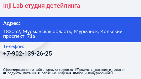 Inji Lab, студия детейлинга по адресу 183052, Мурманская область, Мурманск, Кольский проспект, 71а в дальнейшем Организация, размещена в следующих категориях: