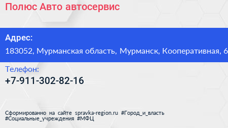 Полюс Авто, автосервис по адресу 183052, Мурманская область, Мурманск, Кооперативная, 6 в дальнейшем Организация, размещена в следующих категориях: