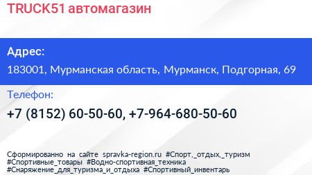 TRUCK51, автомагазин по адресу 183001, Мурманская область, Мурманск, Подгорная, 69 в дальнейшем Организация, размещена в следующих категориях: