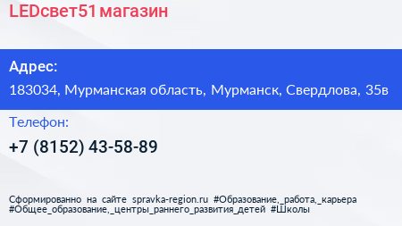 LEDсвет51, магазин по адресу 183034, Мурманская область, Мурманск, Свердлова, 35в в дальнейшем Организация, размещена в следующих категориях: