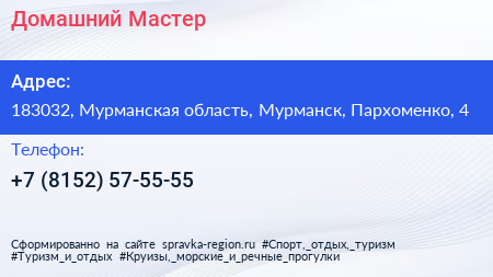 Домашний Мастер по адресу 183032, Мурманская область, Мурманск, Пархоменко, 4 в дальнейшем Организация, размещена в следующих категориях: