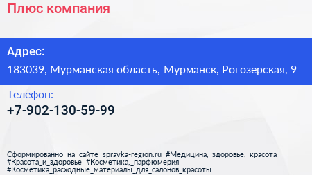 Плюс, компания по адресу 183039, Мурманская область, Мурманск, Рогозерская, 9 в дальнейшем Организация, размещена в следующих категориях: