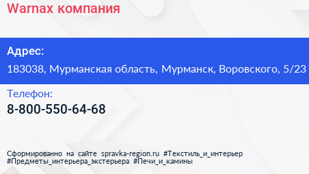 Warnax, компания по адресу 183038, Мурманская область, Мурманск, Воровского, 5/23 в дальнейшем Организация, размещена в следующих категориях: