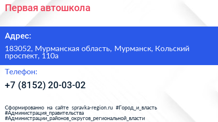 Первая, автошкола по адресу 183052, Мурманская область, Мурманск, Кольский проспект, 110а в дальнейшем Организация, размещена в следующих категориях: