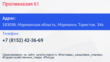 Прогимназия №61 по адресу 183038, Мурманская область, Мурманск, Туристов, 34а в дальнейшем Организация, размещена в следующих категориях: