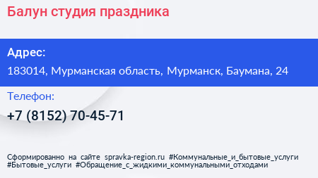 Балун, студия праздника по адресу 183014, Мурманская область, Мурманск, Баумана, 24 в дальнейшем Организация, размещена в следующих категориях: