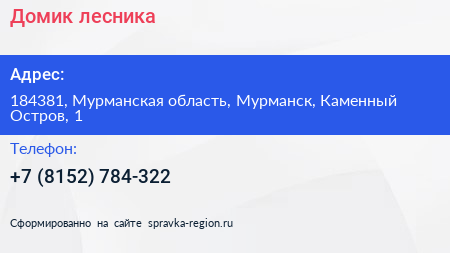 Домик лесника по адресу 184381, Мурманская область, Мурманск, Каменный Остров, 1 в дальнейшем Организация, размещена в следующих категориях: