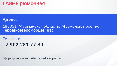 ГАЯНЕ, рюмочная по адресу 183031, Мурманская область, Мурманск, проспект Героев-североморцев, 81а в дальнейшем Организация, размещена в следующих категориях:
