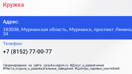 Кружка по адресу 183038, Мурманская область, Мурманск, проспект Ленина, 34 в дальнейшем Организация, размещена в следующих категориях: