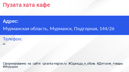 Пузата хата, кафе по адресу Мурманская область, Мурманск, Подгорная, 144/26 в дальнейшем Организация, размещена в следующих категориях: