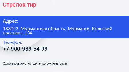 Стрелок, тир по адресу 183052, Мурманская область, Мурманск, Кольский проспект, 134 в дальнейшем Организация, размещена в следующих категориях: