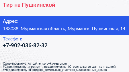 Тир на Пушкинской по адресу 183038, Мурманская область, Мурманск, Пушкинская, 14 в дальнейшем Организация, размещена в следующих категориях: