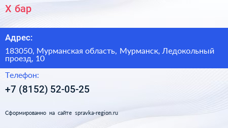 X-бар по адресу 183050, Мурманская область, Мурманск, Ледокольный проезд, 10 в дальнейшем Организация, размещена в следующих категориях:
