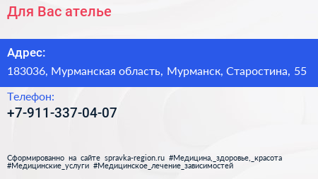 Для Вас, ателье по адресу 183036, Мурманская область, Мурманск, Старостина, 55 в дальнейшем Организация, размещена в следующих категориях: