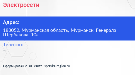 Электросети по адресу 183052, Мурманская область, Мурманск, Генерала Щербакова, 10а в дальнейшем Организация, размещена в следующих категориях: