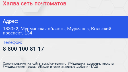 Халва, сеть почтоматов по адресу 183052, Мурманская область, Мурманск, Кольский проспект, 134 в дальнейшем Организация, размещена в следующих категориях: