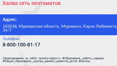 Халва, сеть почтоматов по адресу 183038, Мурманская область, Мурманск, Карла Либкнехта, 34/7 в дальнейшем Организация, размещена в следующих категориях: