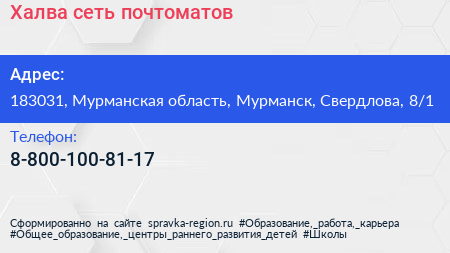 Халва, сеть почтоматов по адресу 183031, Мурманская область, Мурманск, Свердлова, 8/1 в дальнейшем Организация, размещена в следующих категориях: