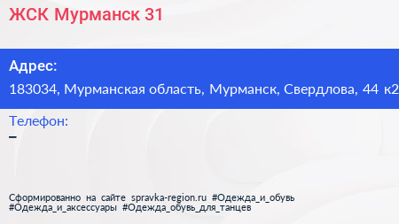 ЖСК Мурманск-31 по адресу 183034, Мурманская область, Мурманск, Свердлова, 44 к2 в дальнейшем Организация, размещена в следующих категориях: