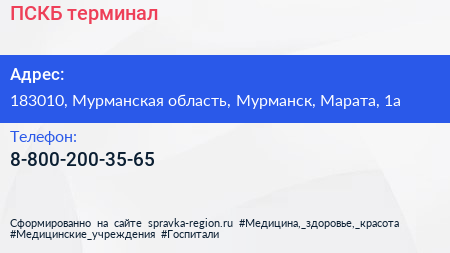 ПСКБ, терминал по адресу 183010, Мурманская область, Мурманск, Марата, 1а в дальнейшем Организация, размещена в следующих категориях: