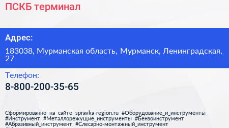 ПСКБ, терминал по адресу 183038, Мурманская область, Мурманск, Ленинградская, 27 в дальнейшем Организация, размещена в следующих категориях: