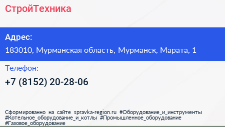СтройТехника по адресу 183010, Мурманская область, Мурманск, Марата, 1 в дальнейшем Организация, размещена в следующих категориях:
