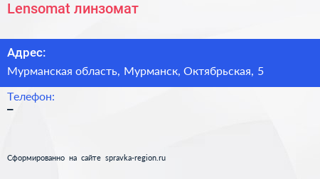 Lensomat, линзомат по адресу Мурманская область, Мурманск, Октябрьская, 5 в дальнейшем Организация, размещена в следующих категориях: