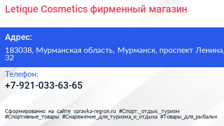 Letique Cosmetics, фирменный магазин по адресу 183038, Мурманская область, Мурманск, проспект Ленина, 32 в дальнейшем Организация, размещена в следующих категориях: