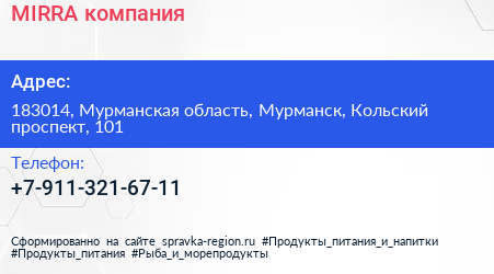 MIRRA, компания по адресу 183014, Мурманская область, Мурманск, Кольский проспект, 101 в дальнейшем Организация, размещена в следующих категориях: