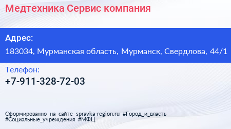 Медтехника Сервис, компания по адресу 183034, Мурманская область, Мурманск, Свердлова, 44/1 в дальнейшем Организация, размещена в следующих категориях: