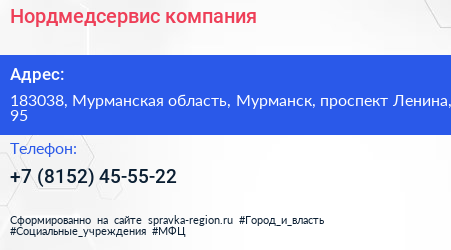 Нордмедсервис, компания по адресу 183038, Мурманская область, Мурманск, проспект Ленина, 95 в дальнейшем Организация, размещена в следующих категориях: