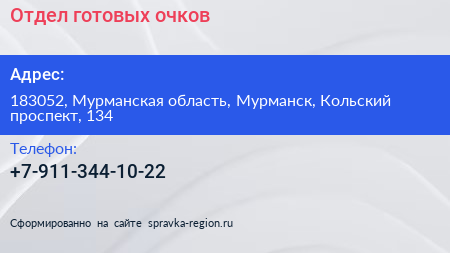 Отдел готовых очков по адресу 183052, Мурманская область, Мурманск, Кольский проспект, 134 в дальнейшем Организация, размещена в следующих категориях: