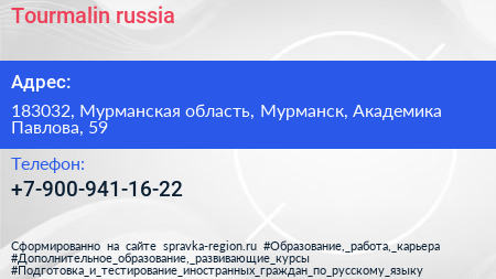 Tourmalin-russia по адресу 183032, Мурманская область, Мурманск, Академика Павлова, 59 в дальнейшем Организация, размещена в следующих категориях: