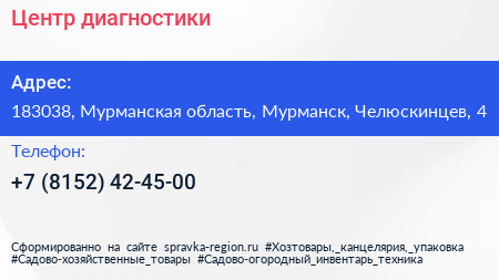 Центр диагностики по адресу 183038, Мурманская область, Мурманск, Челюскинцев, 4 в дальнейшем Организация, размещена в следующих категориях: