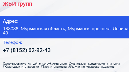 ЖБИ групп по адресу 183038, Мурманская область, Мурманск, проспект Ленина, 43 в дальнейшем Организация, размещена в следующих категориях: