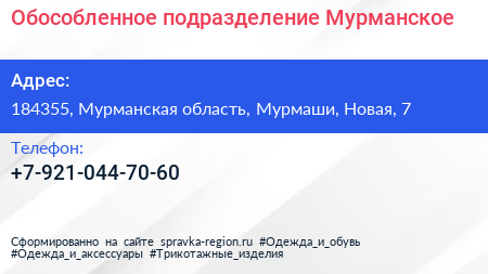 Обособленное подразделение Мурманское по адресу 184355, Мурманская область, Мурмаши, Новая, 7 в дальнейшем Организация, размещена в следующих категориях: