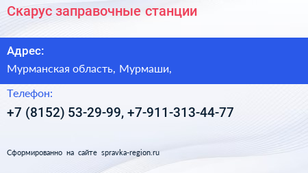 Скарус, заправочные станции по адресу Мурманская область, Мурмаши, в дальнейшем Организация, размещена в следующих категориях: