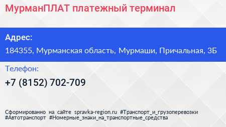 МурманПЛАТ, платежный терминал по адресу 184355, Мурманская область, Мурмаши, Причальная, 3Б в дальнейшем Организация, размещена в следующих категориях: