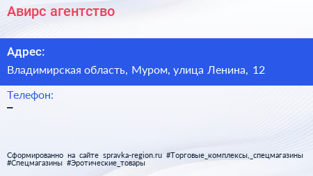 Авирс, агентство по адресу Владимирская область, Муром, улица Ленина, 12 в дальнейшем Организация, размещена в следующих категориях: