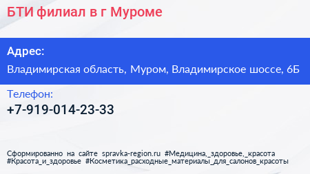 БТИ, филиал в г. Муроме по адресу Владимирская область, Муром, Владимирское шоссе, 6Б в дальнейшем Организация, размещена в следующих категориях: