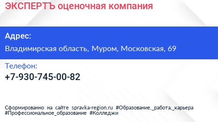 ЭКСПЕРТЪ, оценочная компания по адресу Владимирская область, Муром, Московская, 69 в дальнейшем Организация, размещена в следующих категориях: