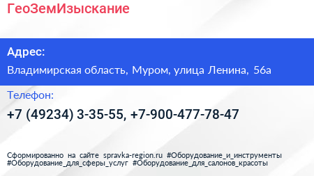 ГеоЗемИзыскание по адресу Владимирская область, Муром, улица Ленина, 56а в дальнейшем Организация, размещена в следующих категориях: