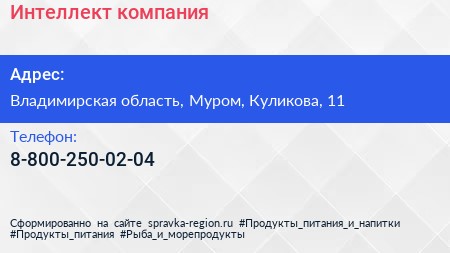Интеллект, компания по адресу Владимирская область, Муром, Куликова, 11 в дальнейшем Организация, размещена в следующих категориях: