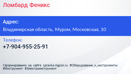 Ломбард Феникс по адресу Владимирская область, Муром, Московская, 10 в дальнейшем Организация, размещена в следующих категориях: