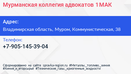 Мурманская коллегия адвокатов №1 МАК по адресу Владимирская область, Муром, Коммунистическая, 38 в дальнейшем Организация, размещена в следующих категориях: