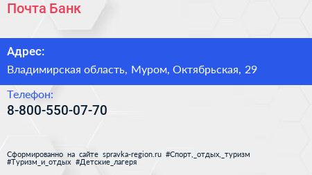 Почта Банк по адресу Владимирская область, Муром, Октябрьская, 29 в дальнейшем Организация, размещена в следующих категориях: