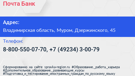 Почта Банк по адресу Владимирская область, Муром, Дзержинского, 45 в дальнейшем Организация, размещена в следующих категориях: