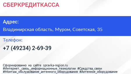 СБЕРКРЕДИТКАССА по адресу Владимирская область, Муром, Советская, 35 в дальнейшем Организация, размещена в следующих категориях: