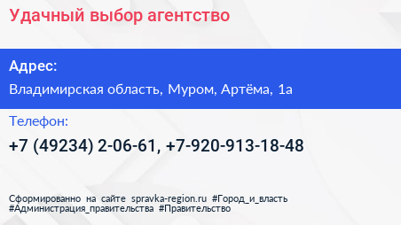 Удачный выбор, агентство по адресу Владимирская область, Муром, Артёма, 1а в дальнейшем Организация, размещена в следующих категориях:
